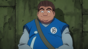 When they reach the tunnel, they are given identification numbers by Beans. Later, they are befriended by Tonpa, also known as the Rookie Crusher. He tells them about the other applicants; the most notable is Hisoka, who nearly killed an examiner from last year's examination. An applicant bumps into Hisoka without apologizing, and Hisoka does something that makes the applicant's arms disappear. Tonpa then offers the three juice with laxatives. Gon and Leorio quickly detect that there is something wrong with the juice, saying that they might be expired already. Kurapika promptly pours the juice out of his can. Tonpa hastily leaves them after apologizing and remembers the other applicants who have not taken his bait like Hanzo and Nicole.